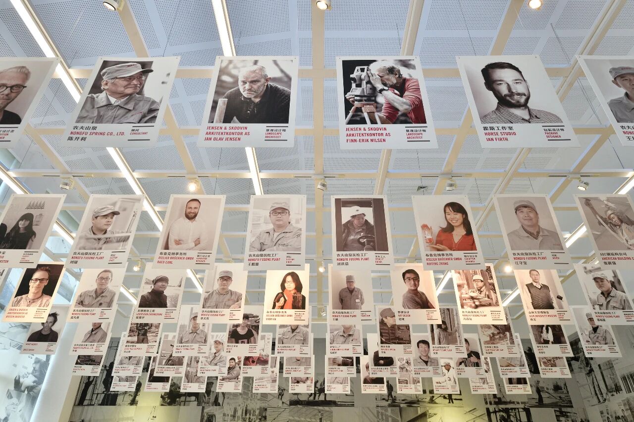 ▲2014 年正式投產(chǎn)的農(nóng)夫山泉撫松工廠,其展廳內(nèi)展示有設(shè)計(jì)建造者與歷任員工的照片